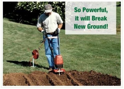 - The powerful electric motor provides the same tilling performance as gas powered tillers in a clean and environmentally friendly alternative