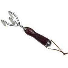 Green Thumb, Stainless Steel Cultivator, Natural Polish, Wood Handle & Leather Strap.
